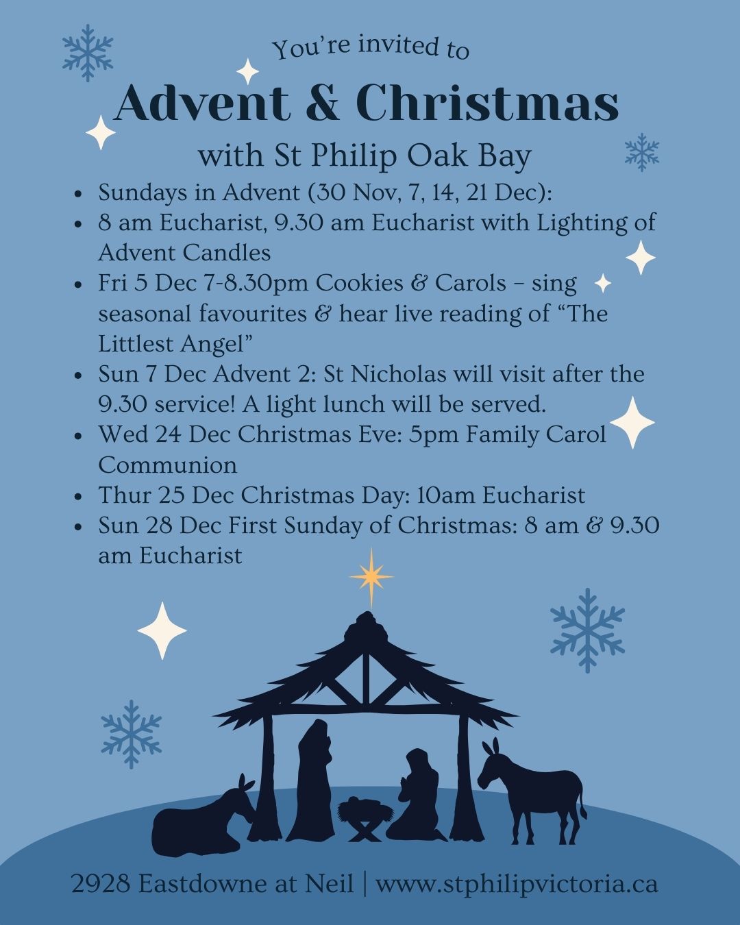 Sun 30 November Advent 1: 8am Eucharist, 9.30 am Eucharist with Lighting of Advent Candle - live streamed.